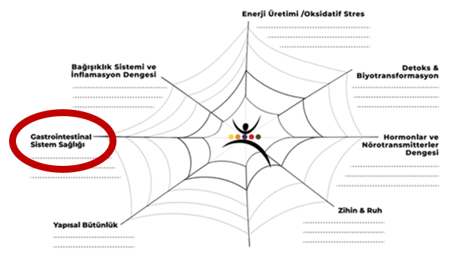 Spor performansına bütüncül yaklaşımın ekseninde gastrointestinal sistem var diyebiliriz. Bu sistemin kendimizi nasıl hissettiğimizden başlamak üzere, bağışıklık sistemi ve inflamasyon dengesi ile, enerji üretimi ve oksidatif stres ile toksin yükü ve detoks dengesi ile de bire bir bağlantısı var.